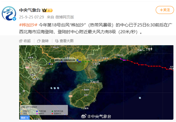 北京新闻根据@central气象天文台的微博,年度第18台台风的中心“ Fuagaza”(热带风暴级别)降落在25的6:30左右的G​​uangdong市海岸,左右是25的6:30。中心附近的最大风速为8级(每秒20分)。 XIN JING编辑